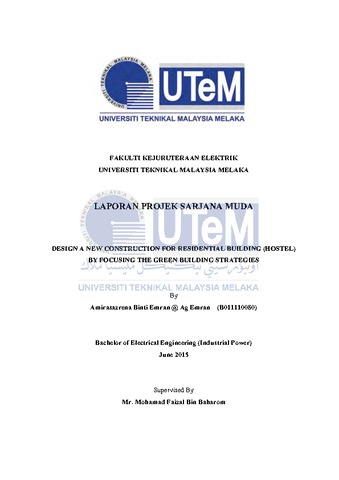 Amirasazrena, Emran (2015) Design a new construction for residential building (hostel) by focusing the green building strategies. Project Report. Universiti Teknikal Malaysia Melaka, Melaka, Malaysia. (Submitted)