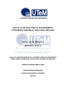 Mohamad Amirul, Ariffin (2015) Analysis And Development Of A Control Strategy For Robotic Wheelchair Controlled Using Single Channel Eeg Headset. Project Report. UTeM, Melaka, Malaysia. (Submitted)