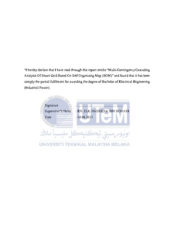 Muhammad Asyraf, Mat Yusof (2015) Multi-Contingency Cascading Analysis Of Smart Grid Based On Self Organizing Map (SOM). Project Report. Universiti Teknikal Malaysia Melaka, Melaka, Malaysia. (Submitted)