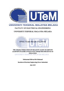 Muhammad Ridwan, Muhamad (2015) The Characterization Of Negative Cloud-To-Ground Lightning Flashes In Malaysia Under The Influence Of Pollution. Project Report. Universiti Teknikal Malaysia Melaka, Melaka, Malaysia. (Submitted)