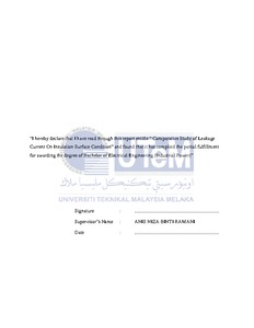 Muhamad Syakir, Kamis (2015) Comparative Study Of Leakage Current On Insulation Surface Condition. Project Report. Universiti Teknikal Malaysia Melaka, Melaka, Malaysia. (Submitted)