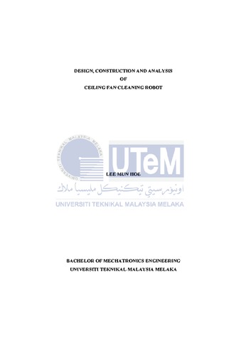 Lee, Mun Hoe (2015) Design, construction and analysis of ceiling fan cleaning robot. Project Report. Universiti Teknikal Malaysia Melaka, Melaka, Malaysia. (Submitted)