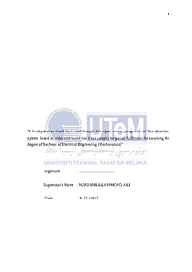 Mohammed, Sari Abdo Ali (2015) Recognition Of Face Detection System Based On Video. Project Report. UTeM, Melaka, Malaysia. (Submitted)