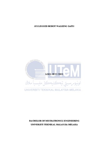 Looi, Siew Chin (2015) Six Legged Robot Walking Gaits. Project Report. UTeM, Melaka, Malaysia. (Submitted)