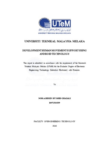 Mhd Ghazali, Nor Ashikin (2016) Development human movement support using android technology. Project Report. Universiti Teknikal Malaysia Melaka, Melaka, Malaysia. (Submitted)