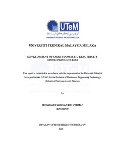Chu, Yen Chun (2016) Development of smart domestic electricity monitoring system. Project Report. Universiti Teknikal Malaysia Melaka, Melaka, Malaysia. (Submitted)