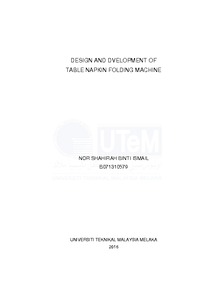 Ismail, Nor Shahirah (2016) Design and development of table napkin folding machine. Project Report. Universiti Teknikal Malaysia Melaka, Melaka, Malaysia. (Submitted)