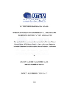 Jasmi, Md Nur Ariff (2016) Development of conveyor tower light alarm signal and monitoring system in factory using LabVIEW. Project Report. Universiti Teknikal Malaysia Melaka, Melaka, Malaysia. (Submitted)