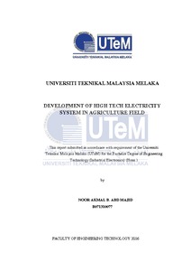 Abd Majid, Noor Akmal (2016) Development of high tech electricity system in agriculture field. Project Report. Universiti Teknikal Malaysia Melaka, Melaka, Malaysia. (Submitted)