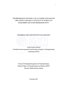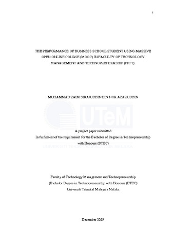 Nor Azaruddin, Muhammad Zaim Sirajuddin (2019) The performance of business school student using massive open online course (MOOC) in Faculty of Technology Management and Technopreneurship (FPTT). Project Report. Universiti Teknikal Malaysia Melaka, Melaka, Malaysia. (Submitted)