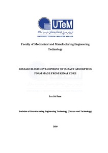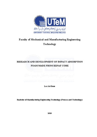 Lee, Set Foon (2020) Research and development of impact absorption foam made from kenaf core. Project Report. Universiti Teknikal Malaysia Melaka, Melaka, Malaysia. (Submitted)
